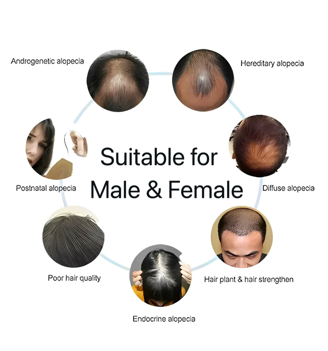 The cap features an adjustable strap which not only fits various head sizes but also effectively covers various areas of hair loss on the scalp, thereby promoting hair growth more efficiently.